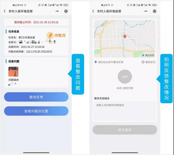 建立巡查員、村、鄉(xiāng)鎮(zhèn)三級(jí)的巡查整改機(jī)制。當(dāng)巡查員發(fā)現(xiàn)問(wèn)題點(diǎn)后,通過(guò)“安吉人居環(huán)境智慧巡查應(yīng)用”上報(bào)問(wèn)題點(diǎn),同時(shí)信息會(huì)流轉(zhuǎn)到所在行政村,網(wǎng)格員根據(jù)應(yīng)用中的位置信息導(dǎo)航前往問(wèn)題點(diǎn),完成現(xiàn)場(chǎng)整改和拍照加文字方式的信息反饋,解決了以往巡查問(wèn)題點(diǎn)難找、整改信息不同步的問(wèn)題。