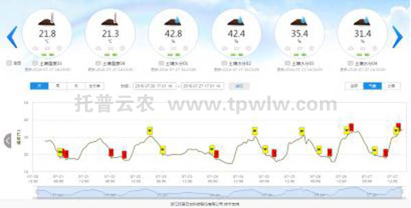 ?????? 其蔬菜基地接入空氣溫度、空氣濕度、土壤溫度、土壤水分、光照、CO2、葉面溫度、莖稈微變化、溫室小管家等傳感設備,精確采集蔬菜大棚的環境信息和植物生理數據,采集數據可上傳至智慧云平臺,通過網頁設置傳感器上下限數值,控制風機、內外遮陽、水肥等設備,保證蔬菜最佳生長環境。大田、玉米基地、棉花基地配有氣象站、蟲情測報燈、植物養分測定儀、視頻監控等設備,綜合監測基地蟲情、墑情、苗情、災情信息。數據自動采集、遠程查看,使農事操作者從繁瑣、繁重的人工管理作業中解放出來,坐在電腦前,即可通過網頁或手機APP輕松掌握各基地情況。