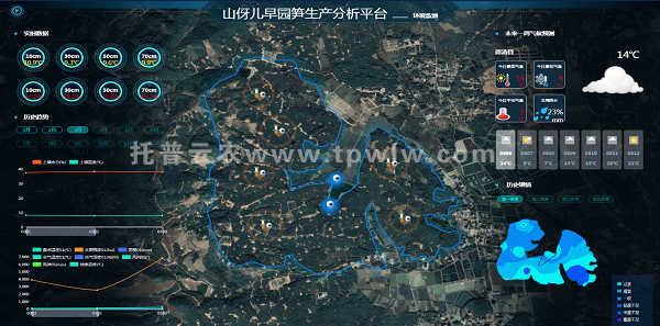 ??? 托普云農幫助山伢兒早園筍在示范區域部署建設一批農業生產環境監測設施,通過動態監測生產環境,輔助決策,對早園筍的生產進行科學的管理,利用物聯網技術,實現早園筍種植基地的遠程監測、土壤監測改良、生長環境異常預警等,保障早園筍種植生產安全,提升早園筍的產量與質量。