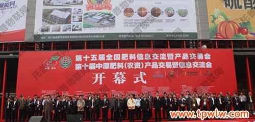 2013年4月16-17日,由全國農(nóng)業(yè)技術(shù)推廣服務(wù)中心、河南省省農(nóng)業(yè)廳、河南省供銷合作總社、鄭州市政府聯(lián)合主辦,河南省土壤肥料站、河南省肥料協(xié)會(huì)承辦的第十五屆全國肥料信息交流暨產(chǎn)品交易會(huì)(簡(jiǎn)稱“全國肥料雙交會(huì)”)在鄭州國際會(huì)展中心隆重舉辦。國務(wù)院參事、農(nóng)業(yè)部原副部長(zhǎng)劉堅(jiān),河南省副省長(zhǎng)王鐵、省農(nóng)業(yè)廳廳長(zhǎng)朱孟洲,農(nóng)業(yè)部種植業(yè)管理司副司長(zhǎng)何才文,全國農(nóng)業(yè)技術(shù)推廣服務(wù)中心主任陳生斗、黨委書記杭大鵬、副主任栗鐵申出席了16日舉行的開幕式,國務(wù)院參事、農(nóng)業(yè)部原副部長(zhǎng)劉堅(jiān)宣布大會(huì)開幕。
