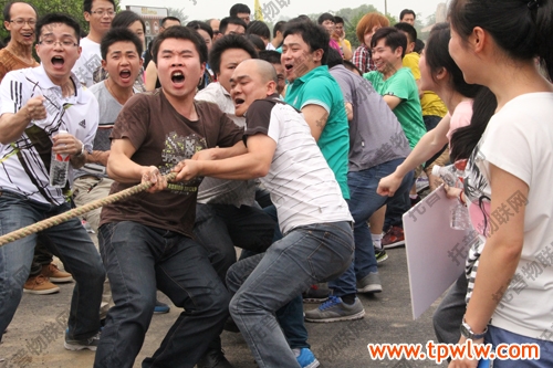 首先進(jìn)行的是拔河比賽。各隊都挑選出最強(qiáng)壯的選手,行兵布陣,站好隊形,拉好繩子。一聲令下,比賽開始。一時間,觀戰(zhàn)人員的加油聲和比賽人員的號子聲響成一片,現(xiàn)場的氣氛瞬間沸騰了起來!最終“好漢隊”以絕對的優(yōu)勢獲得了拔河比賽的第一名。