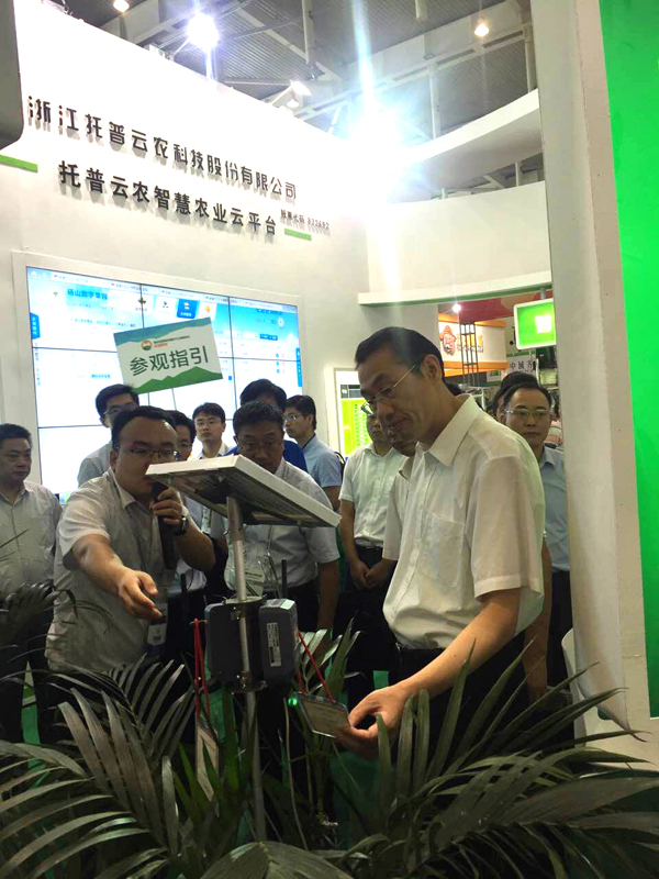 展會(huì)期間,南京市委常委、常務(wù)副市長(zhǎng)劉以安,江蘇省農(nóng)業(yè)委員會(huì)副主任李俊超,南京市農(nóng)業(yè)委員會(huì)主任方中友,等人先后蒞臨托普展區(qū),參觀視察托普云農(nóng)農(nóng)業(yè)物聯(lián)網(wǎng)系統(tǒng)。現(xiàn)場(chǎng)工作人員為其進(jìn)行詳細(xì)講解。工作人員以“碭山數(shù)字果園”為例,介紹了托普云農(nóng)在碭山數(shù)字果園從農(nóng)業(yè)生產(chǎn)、管理、農(nóng)產(chǎn)品銷售到農(nóng)產(chǎn)品質(zhì)量安全追溯等環(huán)節(jié)中所應(yīng)用的系統(tǒng)設(shè)施以及系統(tǒng)應(yīng)用后果園取得的效益,以點(diǎn)帶面具象化的介紹了智慧農(nóng)業(yè)實(shí)現(xiàn)節(jié)本增效的途徑。托普農(nóng)業(yè)物聯(lián)網(wǎng)的實(shí)施應(yīng)用受到了多方肯定。