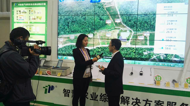 第十四屆中國國際農產品交易會正在昆明舉行,浙江托普云農科技股份有限公司(以下簡稱“托普云農”)展區的傳感器設備引得云南衛視的記者駐足。公司常務副總朱旭華為記者介紹了先進農業儀器的功能并介紹了國內現代農業發展的現狀。
