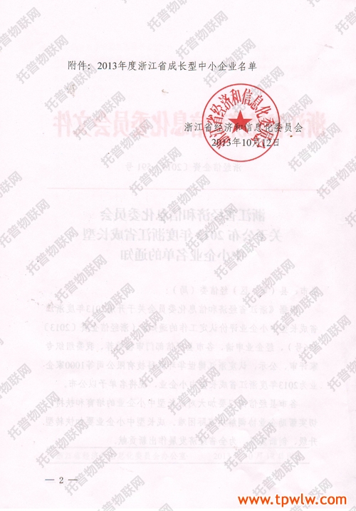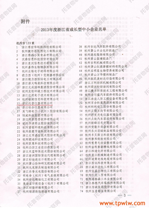圖為:2013年度浙江省成長型中小企業名單(托普儀器在第十五位紅線處)