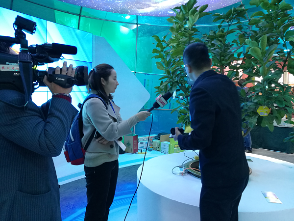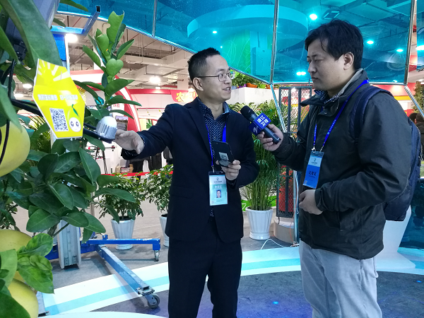 展會現場掛上傳感器的文旦樹“在這棵文旦樹上,我們安裝了無線葉面溫度傳感器、光照強度傳感器、果實膨大傳感器。通過這些傳感器采集傳輸的數據,我們就能知道整個樹的生長秘密”。展會現場,現代農業與信息化的互融發展,吸引浙江衛視、杭州電視臺、蕭山日報、舟山電視臺、金華電視臺等記者前來采訪。