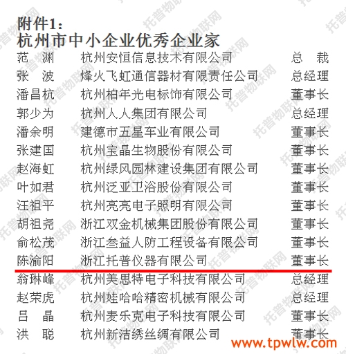 附件:1.杭州市優秀中小企業家名單