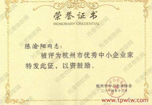恭喜托普儀器陳渝陽董事長獲得杭州市“中小企業優秀企業家”稱號