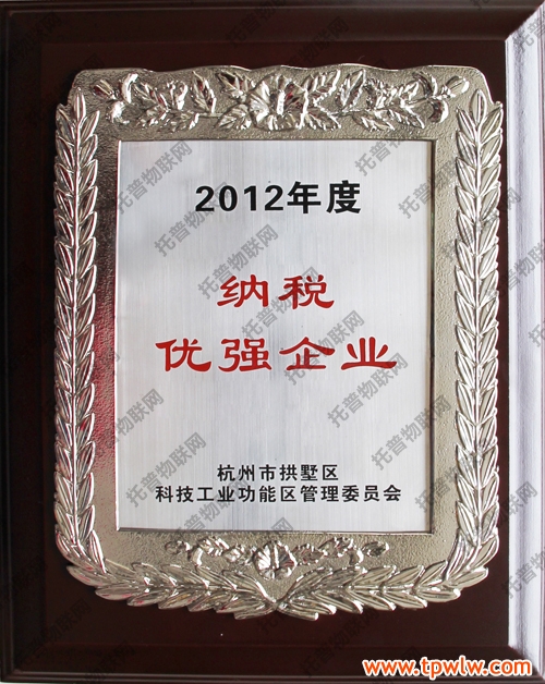 為進一步深入落實杭州市扶優扶強政策,提高企業的整體實力和經濟水平,根據杭州市拱墅區科工區[2012]13號文件精神,杭州市拱墅區科技工業功能區管委會研究決定表彰浙江托普儀器有限公司為2012年“納稅優強企業”。