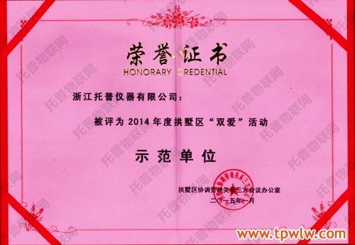 - 托普儀器被評選為拱墅區(qū)“雙愛”活動示范單位發(fā)表日期:2015-02-27 來源:托普云農(nóng) 瀏覽次數(shù):3816次