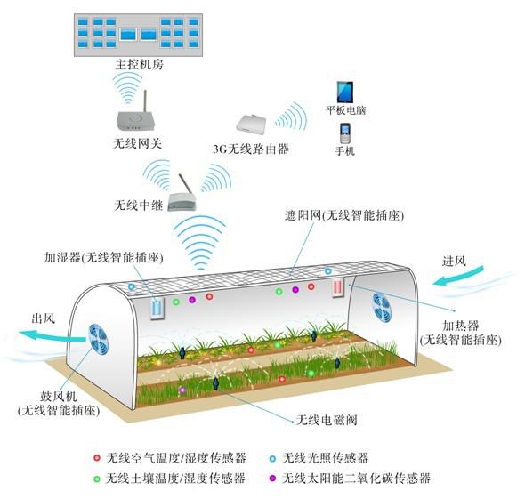 3)設備控制系統:澆灌系統;通風,遮陽;加濕;無線智能插座