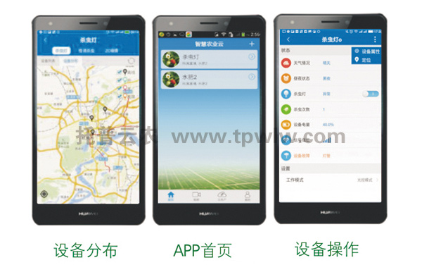 2、可通過Web端與APP遠(yuǎn)程控制。足不出戶就可以殺蟲燈了解地理位置、設(shè)備編號、基地名稱、故障報(bào)警信息。