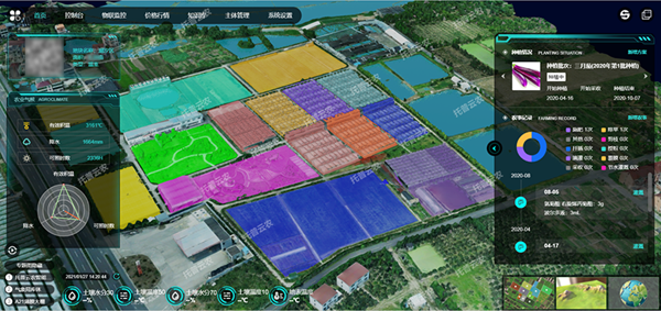 基地大屏:以基地為抓手展示基地設備,氣象數據,土壤數據,病蟲害測報數據。通過對病蟲測報數據和氣象條件的數據關聯度分析環境條件對病蟲害發生的影響,為病蟲害防治提供數據支撐。