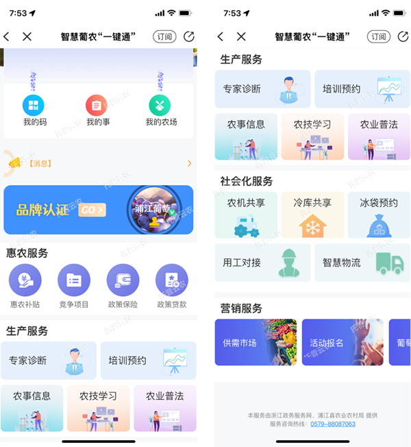 農(nóng)戶可在應(yīng)用中一鍵申請“浦江葡萄”地理標(biāo)志農(nóng)產(chǎn)品授權(quán),縣農(nóng)業(yè)農(nóng)村局借助AI智能設(shè)備以及葡農(nóng)的“精準(zhǔn)畫像”,對種植規(guī)模≥30畝、畝產(chǎn)低于3000斤、葡齡3年以上的農(nóng)戶進行一鍵授權(quán),提升“浦江葡萄”品牌的溢價能力,推動葡農(nóng)控產(chǎn)提質(zhì)。對授權(quán)的品牌產(chǎn)品建立追溯體系,整合葡農(nóng)的農(nóng)場、產(chǎn)品、質(zhì)檢等信息生成溯源碼,通過掃碼即可查詢葡萄從種植到銷售的全鏈條信息。