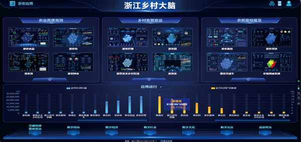 浙江省農(nóng)業(yè)農(nóng)村廳圍繞省委數(shù)字化改革決策部署,聚焦大腦監(jiān)測分析評價、預(yù)測預(yù)警和戰(zhàn)略目標管理能力的新目標,大力推進"浙江鄉(xiāng)村大腦 +浙農(nóng)系列應(yīng)用"體系建設(shè),迭代形成以"11153"核心構(gòu)架為支撐的"浙江鄉(xiāng)村大腦"(1個數(shù)據(jù)倉,1張全域地理信息圖,1個"浙農(nóng)碼”,5個庫為知識庫、規(guī)則庫、算法庫、模型庫和組件庫,3領(lǐng)域能力為農(nóng)業(yè)智能、鄉(xiāng)村智治、農(nóng)民智富),按照'一表一圖N清單"的方法,開發(fā)建設(shè)9個智能模塊,以數(shù)字技術(shù)助力農(nóng)業(yè)農(nóng)村現(xiàn)代化、鄉(xiāng)村振興和農(nóng)民農(nóng)村共同富裕。目前,"浙江鄉(xiāng)村大腦"已實現(xiàn)省市縣三級貫通。